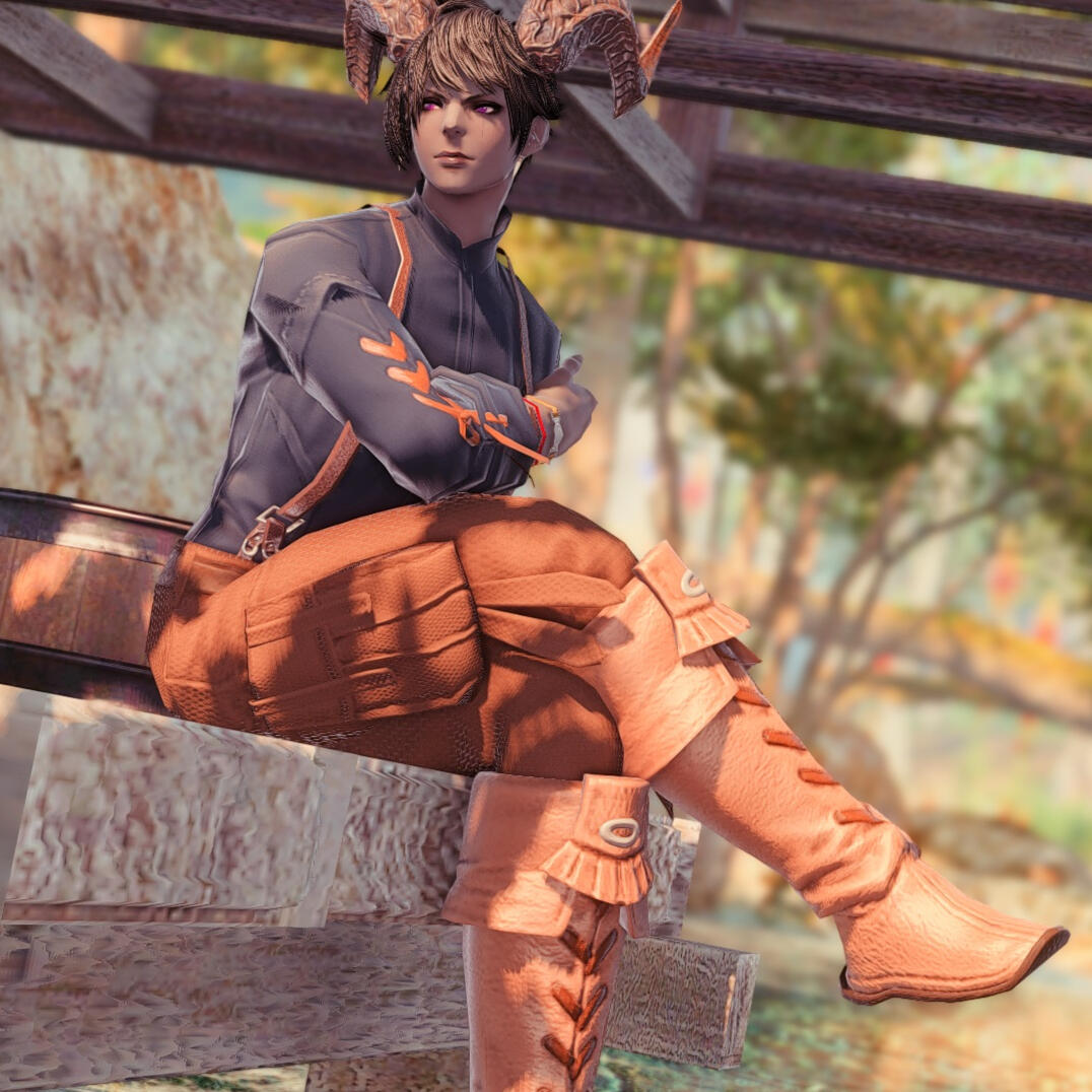 Bleiswyrd Ansamhawner was born to two unknown Roegadyn parents. The circumstances of her birth, as well as the reason for her abandonment are only known to her parents.Only for about three years was Bleiswyrd in the care of her parents. During which, she found herself being able to understand a lot of what her parents could say. Despite little in the way of education. But one night, during a carriage ride through the wilds of La Noscea, she was lost.Whether abandoned on purpose, or by accident, the result was the same, a small, three year old Roegadyn, alone in the forests of La Noscea. What should've been an untimely end, ended up becoming a saving grace for Bleiswyrd. As the small child wandered the woodlands, something found her first. Looming over her, a long armed behemoth with hundreds of razor sharp teeth. A goobbue. A creature which, to most small children, would spell doom, but when Bleiswyrd babbled at it, it made noises back. Noises Bleiswyrd, for some reason, understood. The tiny fragment of The Echo hidden deep within Bleiswyrd's soul, bestowed upon her, the ability to talk to this goobbue. The Goobbue, under most circumstances, would most definitely just devour the child, as it would anything that cannot outrun it. But this time, for some reason, maybe it was lonely, or lost a sproutling, or just was bored. The Goobbue, took in Bleiswyrd, and took care of it, raising it like a parent would.Due to a lack of a language barrier, they actually could form a bond, and have some lovely, albeit simplistic conversation. Thus was spent the next 13 years of Bleiswyrd's life. Living the life of a Goobbue, eating biomatter, devouring small animals, and standing idly in the sun.Eventually though, Bleiswyrd had to get out there, had to see the world. So, at the age of 16, Bleiswyrd gave a last hug to their guardian goobbue, and headed into civilization, but not before grabbing some leaves, plant fibers and old skins, and fashioning them into clothes. A naked, musclebound Roegadyn with horns walking into a city would certainly be an odd sight to behold.For the next few years, with help from her Echo, Bleiswyrd managed to somewhat adapt to the world she now found herself in. Doing odd jobs for money, her previous life of strenuous physical activity really ended up paying off in that regard. Eventually, Bleiswyrd became a part of a small crew of "Woodsmen and Woodswomen" as they called it. This job was stable, and actually allowed her to stay in a single spot for a while. During her work, she befriended an elderly Hyur man, who recounted his tales of being an adventurer, and attributed his long life to a blue crystal which apparently granted him mystical abilities. After a few years, the Hyur man was nearing his death, and gave Bleiswyrd the blue crystal, which, unbeknownst to her, was a soul crystal, the crystal of a blue mage. Now, Bleiswyrd doesn't really know how it works, and thus has gained only two abilities from it, one from a boar, and the other from a coerl, both of which her crew had to fight off to get them away from the logging site.Now Bleiswyrd does her day to day job, and lives her best life, sometimes paying visits to her Goobbue guardian, seeking to unravel the mystery of that blue crystal.After adjusting more to society. Bleiswyrd was recruited into a free company of fellow outdoorsy folk, known as the Faerie Forest. Where she resides in a room, sharing it with one of her woodsman friends, an enigmating, name-changing Namazu, who is currently known as Gyotsono. What Gyotsono wants with Bleis, is to be determined, but one thing is for certain. He has the vacant stare locked down.